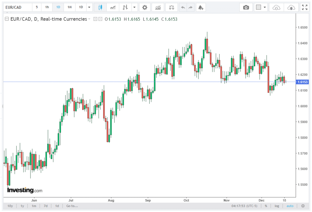 The EUR/CAD pair edged higher in early European trading on Friday, approaching 1.6160. The uptick comes as the Euro (EUR) outperforms major peers ahead of a series of European Central Bank (ECB) speeches scheduled later in the day.