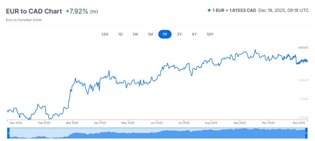 Traders should anticipate increased volatility in EUR/CAD ahead of the ECB speeches and the Canadian Retail Sales release. Historical patterns show that the EUR often reacts sharply to ECB commentary on interest rates and inflation expectations, while the CAD is sensitive to domestic economic data, including retail sales, employment figures, and commodity trends.