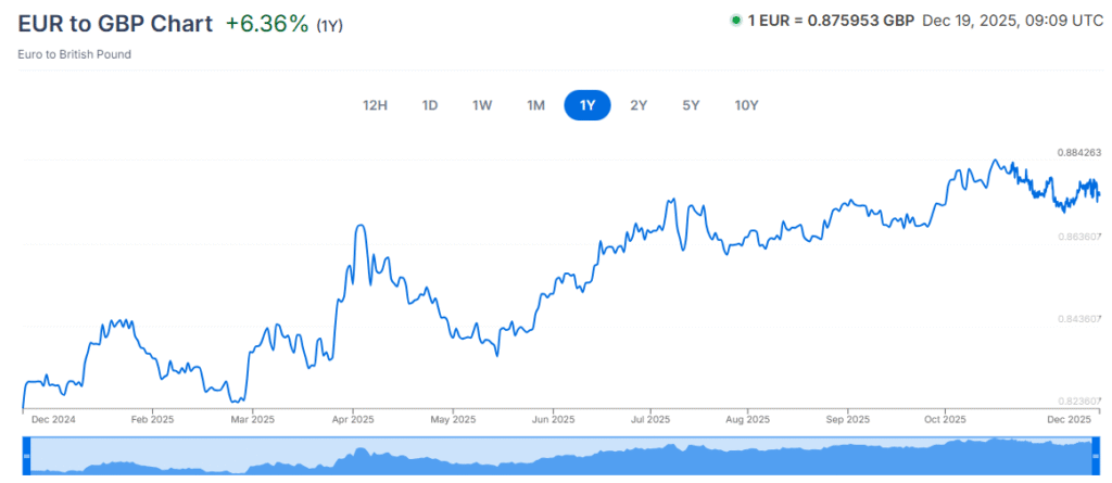 If the BoE continues to cut rates in early 2026 as projected, the GBP may face continued downside pressure, potentially pushing EUR/GBP higher toward the 0.88 handle. Conversely, a stronger-than-expected UK economic recovery could provide support for the pound, keeping EUR/GBP within its current range.