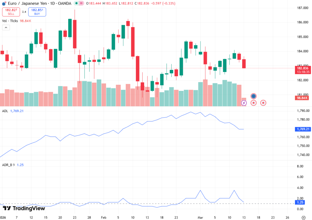 For the near term, traders should monitor 183.43, where the nine-day EMA acts as the first resistance level. Beyond this, the upper boundary of the descending triangle, located around 183.70, presents the next significant hurdle. A sustained move above this point could allow EUR/JPY to target the all-time high of 186.88, reached on January 23, potentially attracting momentum-driven traders and increasing volatility in the cross.