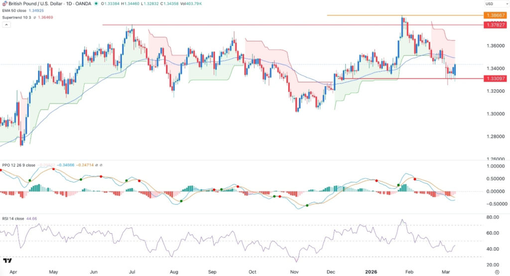 For now, the technical structure indicates that GBP/USD bulls may attempt a push toward the 1.3550 resistance level, provided that support around 1.3310 continues to hold.