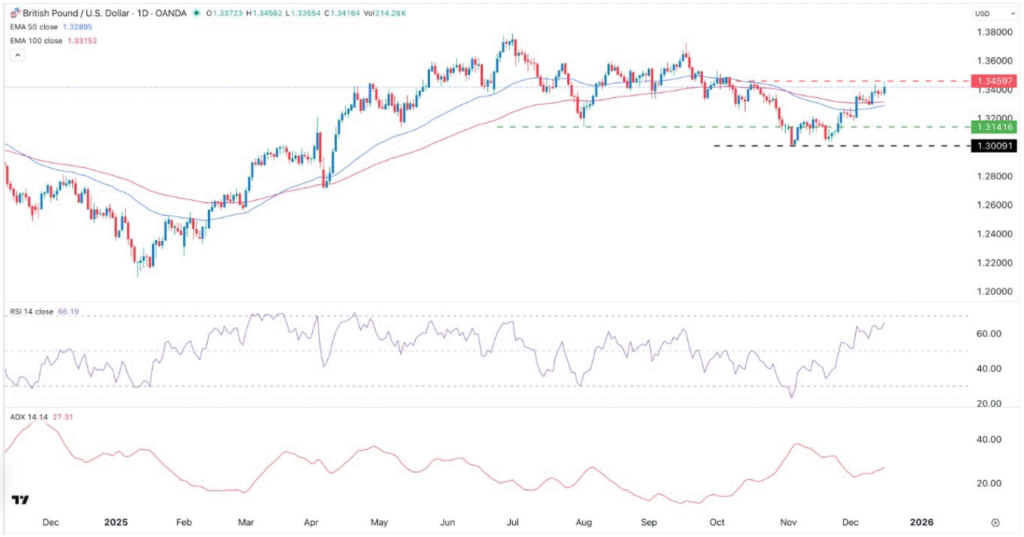 From a technical perspective, GBP/USD has shown a strong bullish rebound over the past few days. The pair moved above its 50-day and 100-day Exponential Moving Averages (EMA), indicating a potential trend reversal. The 50-day EMA is currently on the verge of crossing above the 100-day EMA, which could provide a powerful bullish signal for traders targeting short- and medium-term gains.