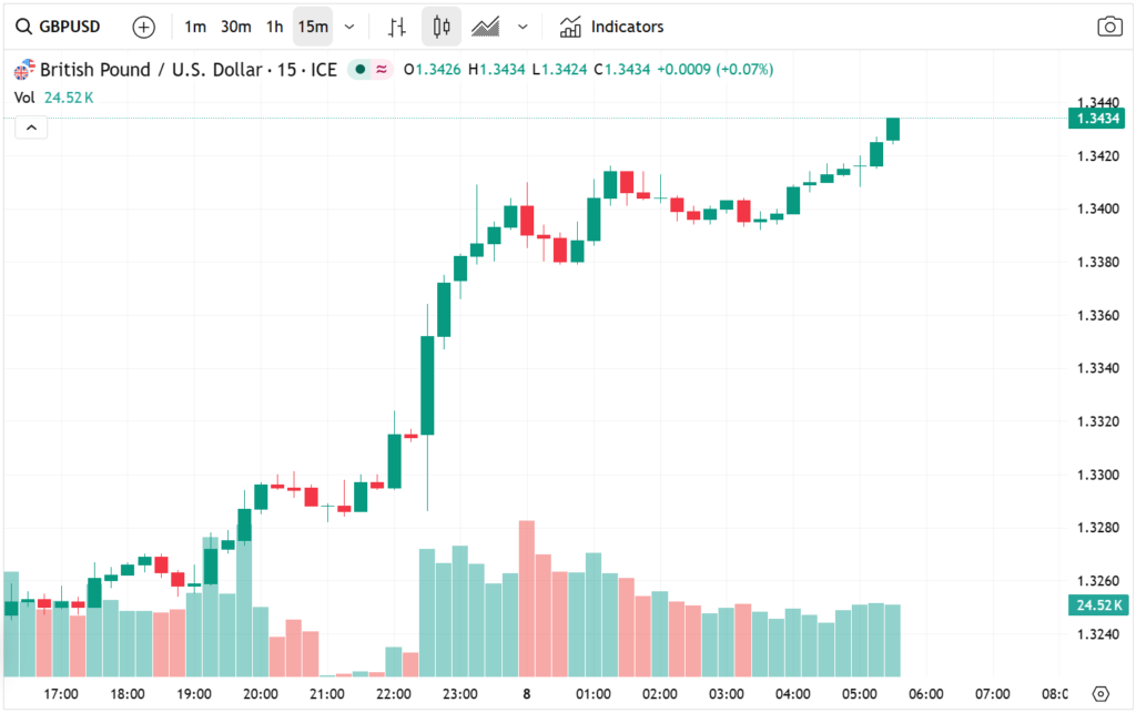 On Tuesday, the pair traded around 1.3240, marking a significant decline from its year-to-date high of 1.3865. This sharp pullback reflects a combination of risk aversion, US dollar strength, and weakening expectations for the UK economy.