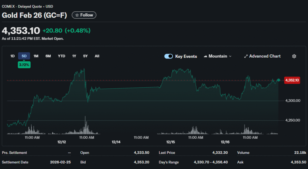 Options markets showed heavy call buying at $4,500 and $5,000 strikes. This positioning reflected bullish sentiment extending into 2026. However, putting protection around $3,500 indicated prudent risk management.