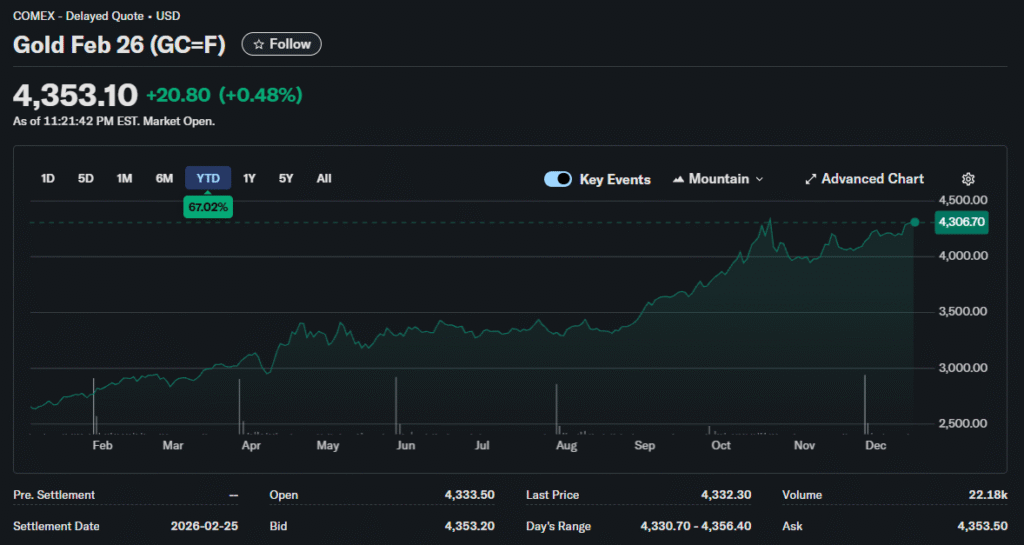 Gold’s quieter performance contrasted sharply with silver’s explosive move. While silver grabbed headlines with 115% gains, gold’s steadier appreciation attracted conservative capital. Risk-adjusted returns favored gold’s stability.