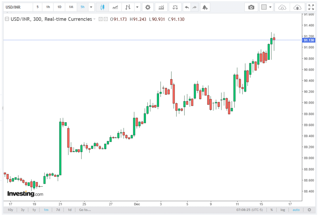 Despite the pressure on the INR, India’s recent trade data offered a glimmer of optimism. Government figures revealed that the merchandise trade deficit narrowed to $24.53 billion in November, down from $41.68 billion in October, beating the Reuters poll estimate of $32 billion.
